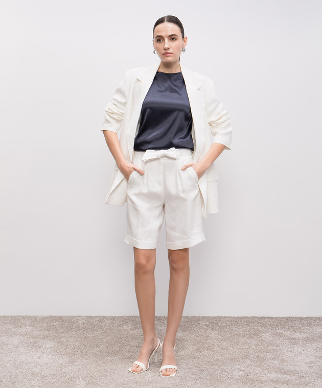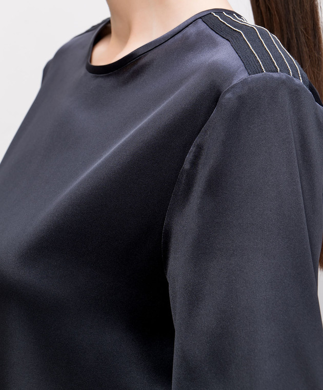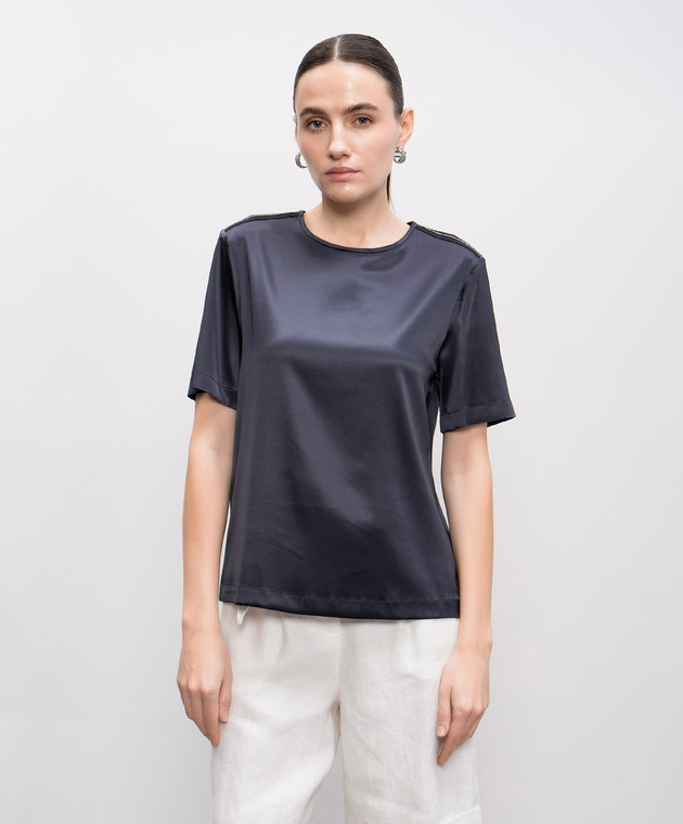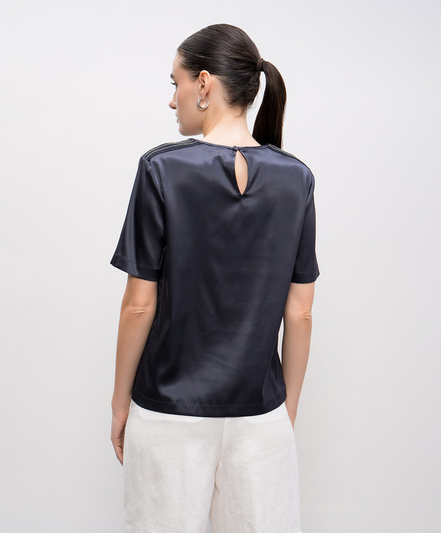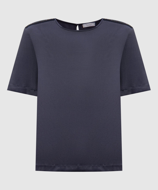 Синій топ із шовку з ланцюжком моніль