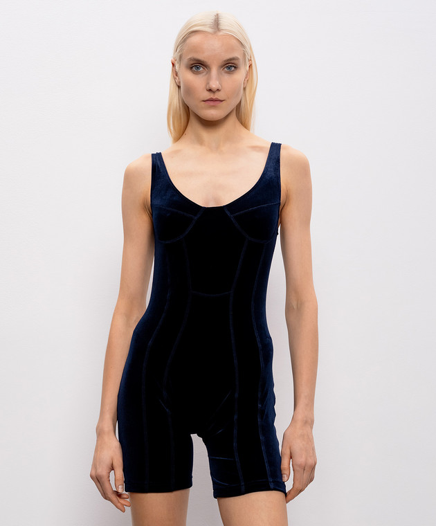 Синій велюровий комбінезон з вишивкою логотипа