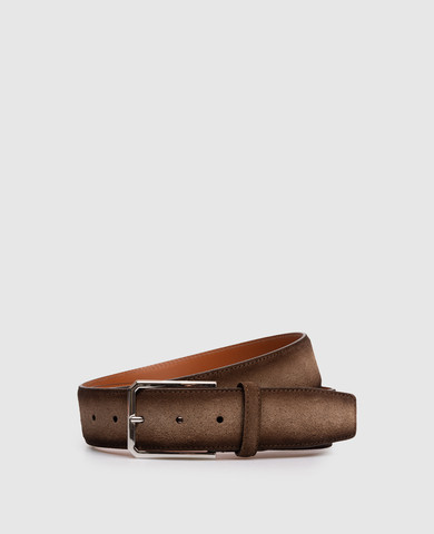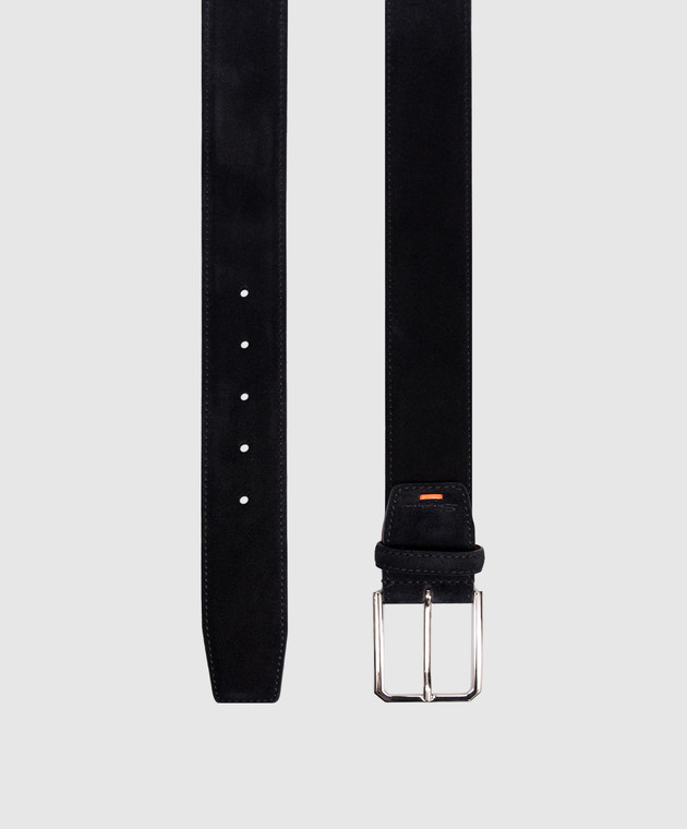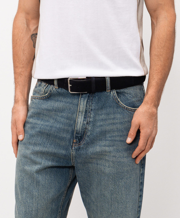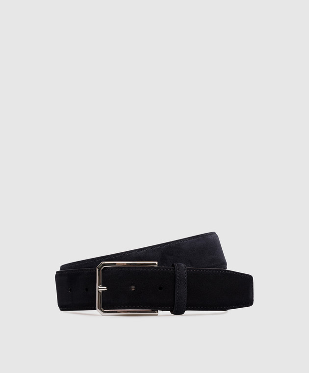 Синій замшевий ремінь з тисненням логотипа