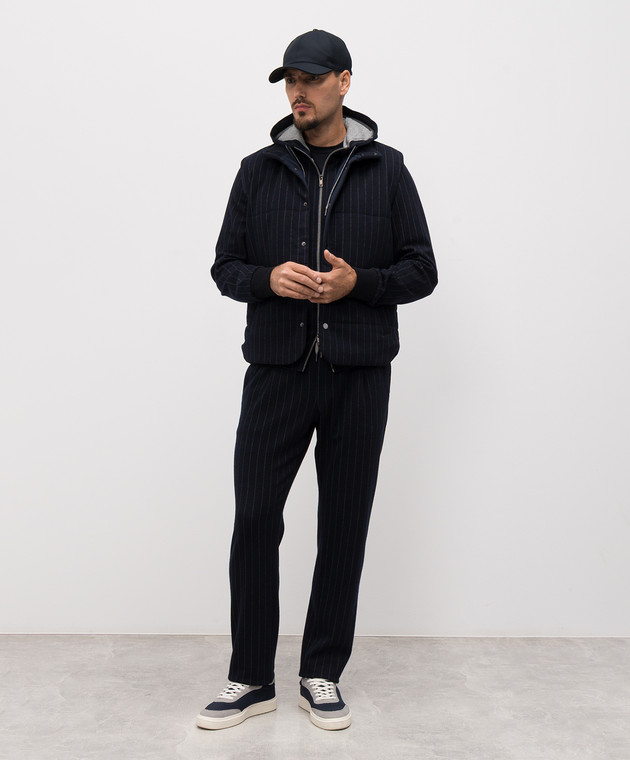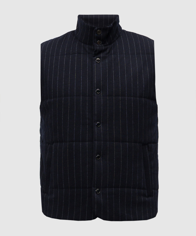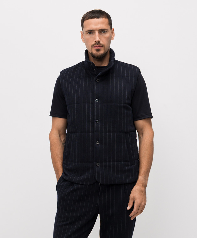 Синій жилет з вовною в смужку