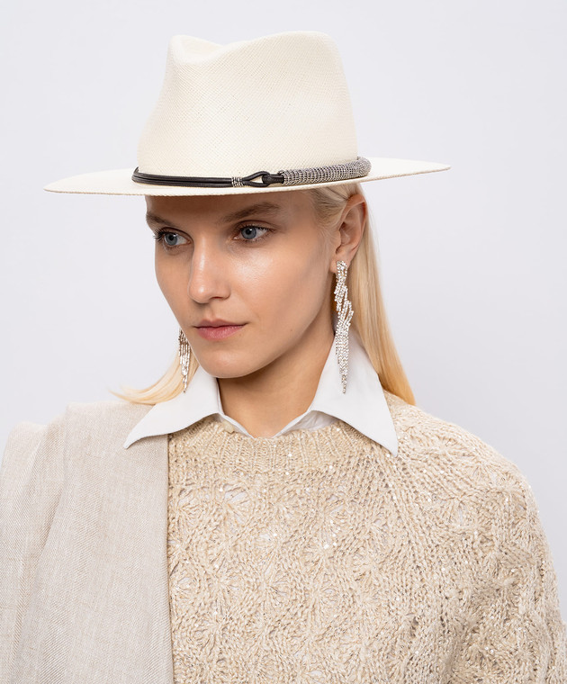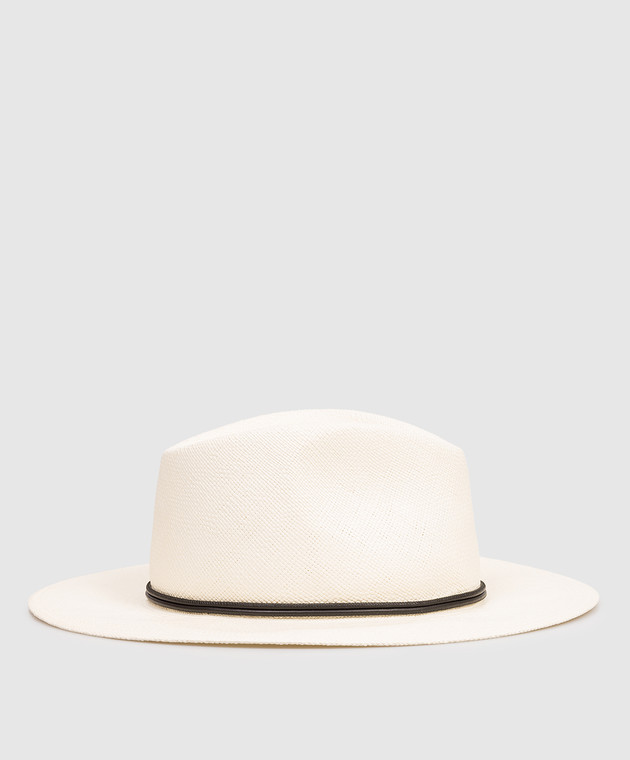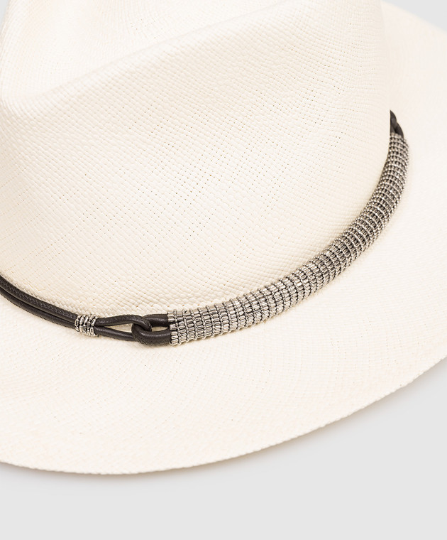 Солом'яний капелюх-федора кольору айворі з ланцюжком моніль