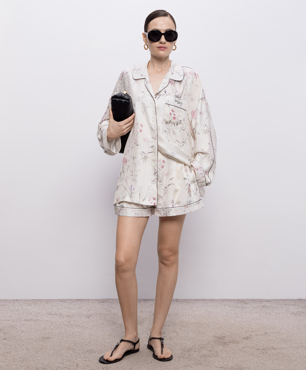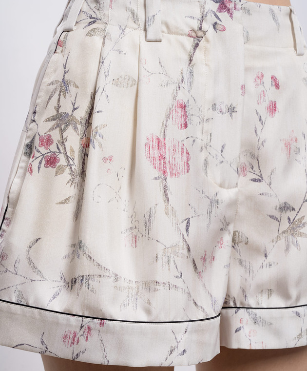 Шорти кольору айворі із шовку в квітковий принт