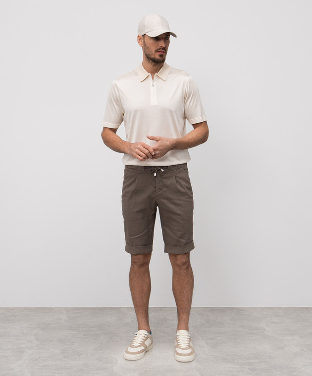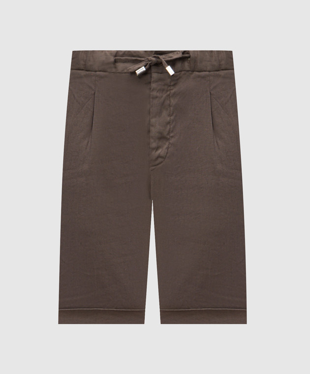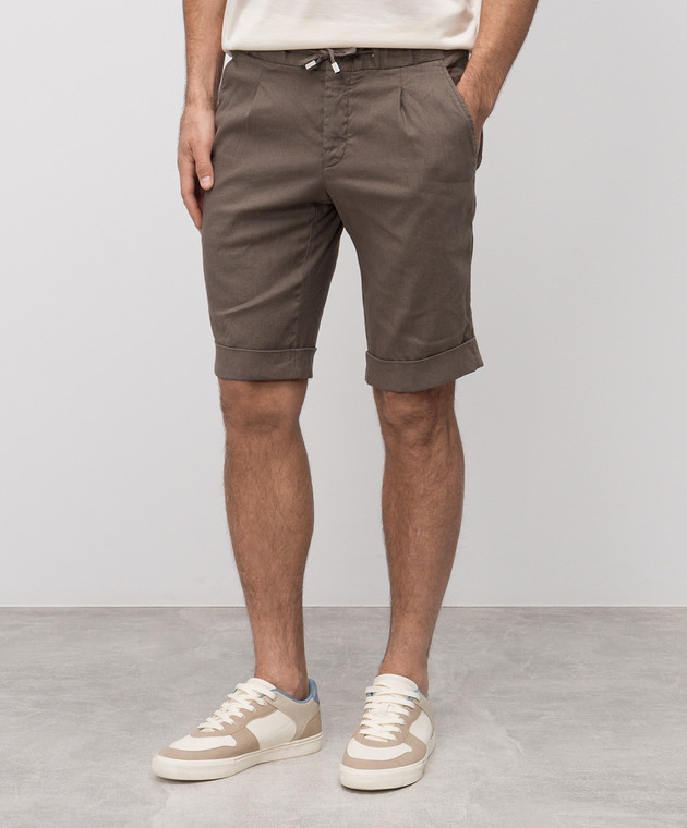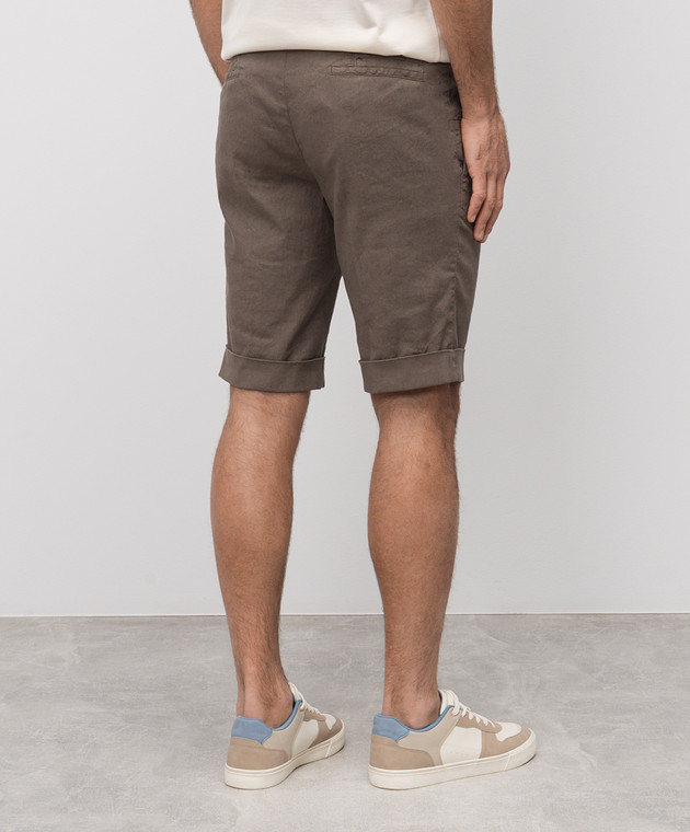Шорти кольору хакі з льоном з відворотами