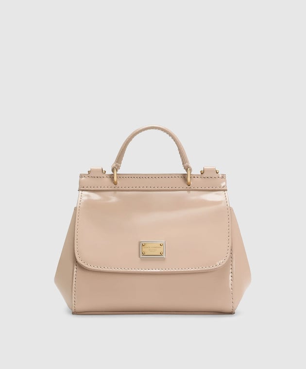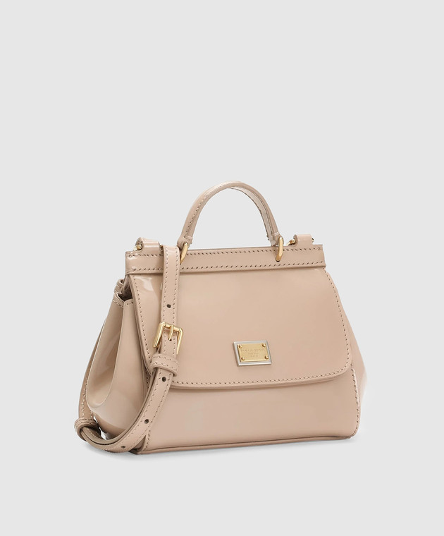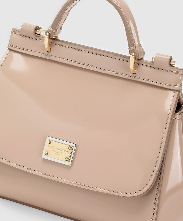 Дитяча бежева шкіряна лакована сумка міні Sicily