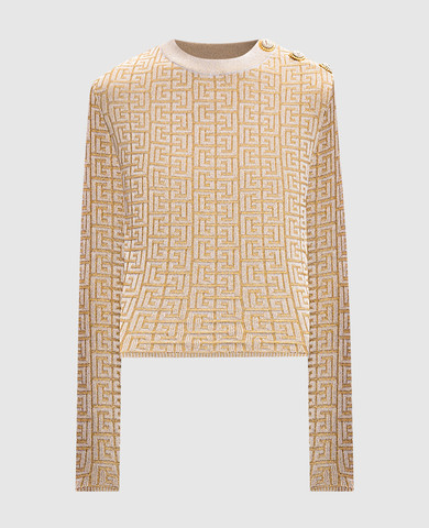 Бежевий джемпер з шовку та кашеміру з паєтками