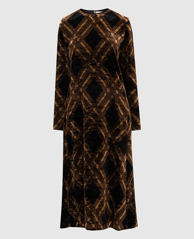 Темно-коричнева велюрова сукня у візерунок