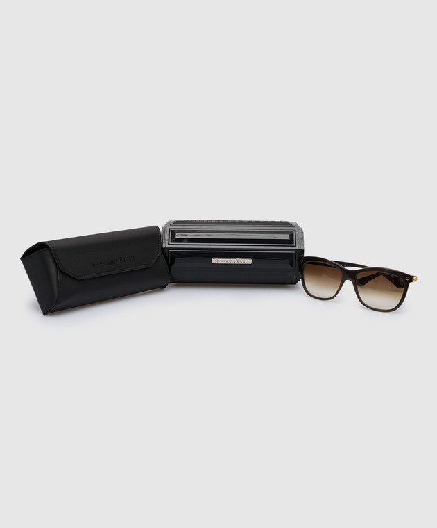 Темно-коричневі сонцезахисні окуляри Power з натурального рогу буйвола з оздобленням шаруватою деревиною