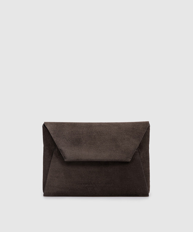 Темно-коричневий замшевий клатч з тисненням логотипа
