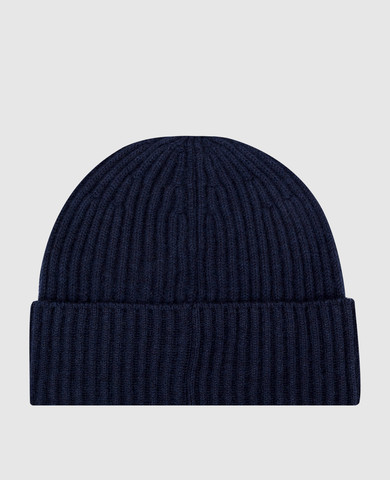 Темно-синя шапка з кашеміру з хутром лисиці