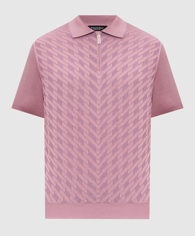 Темно-синє поло з шовком в геометричний візерунок