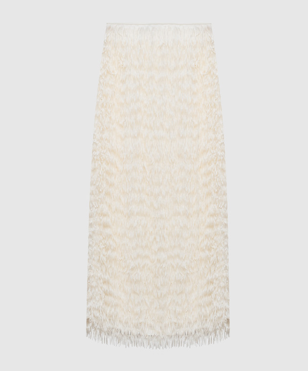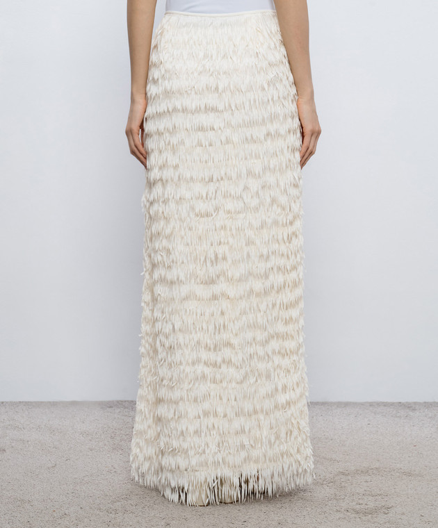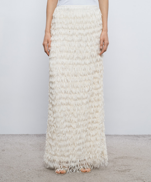 Спідниця максі кольору айворі з бахромою