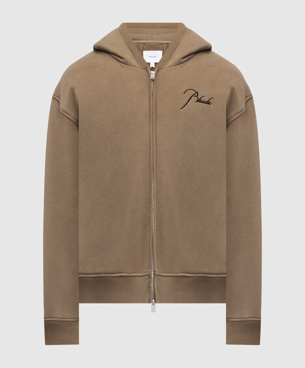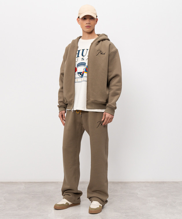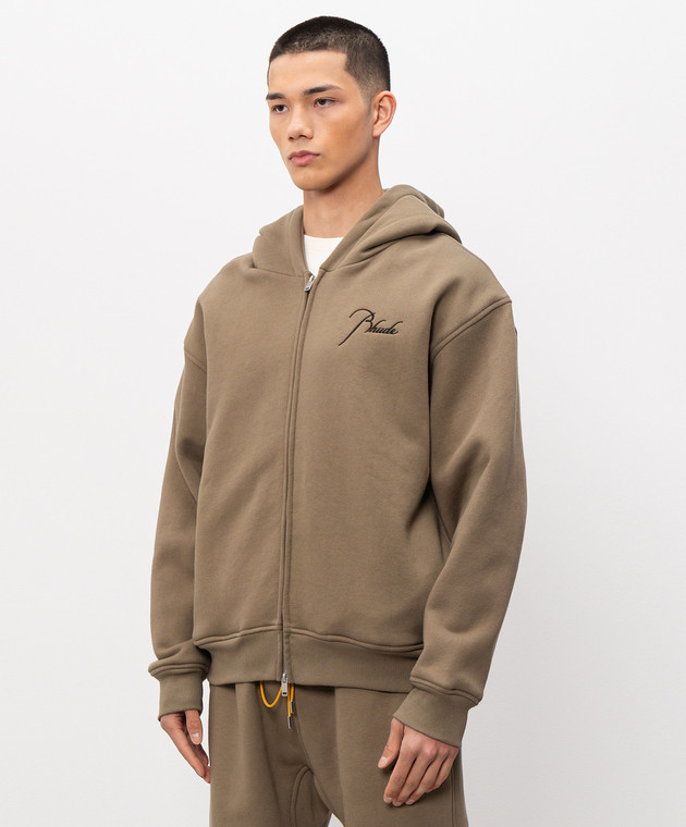 Утеплена спортивна куртка кольору хакі з вишивкою логотипа