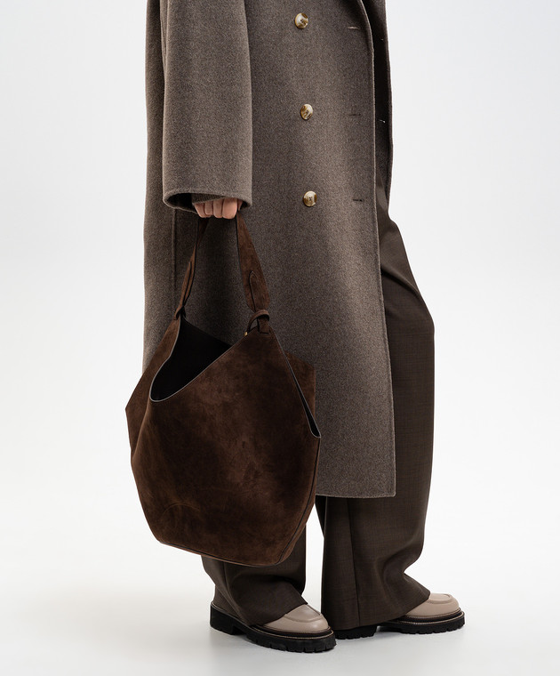 Коричнева замшева сумка Lotus з тисненням логотипа