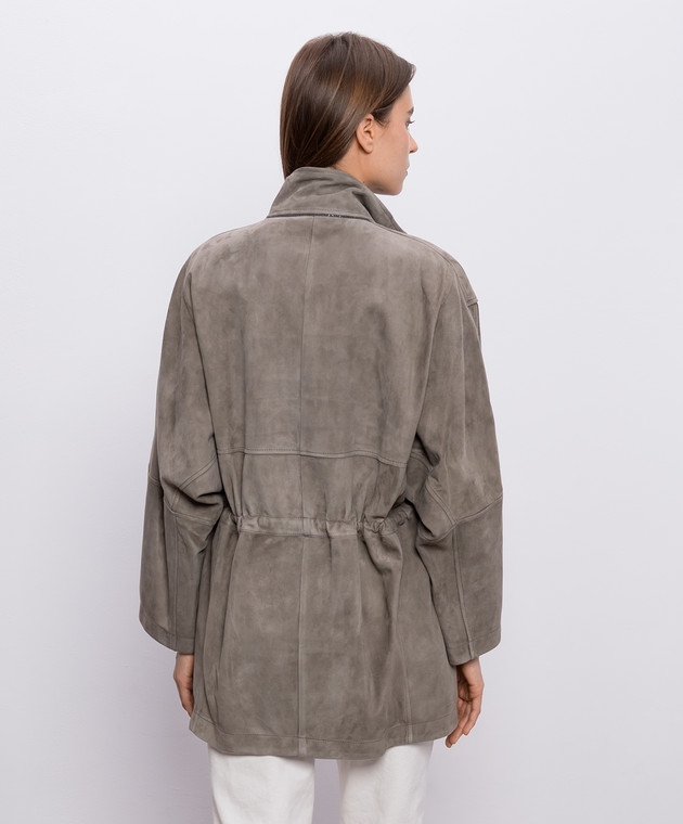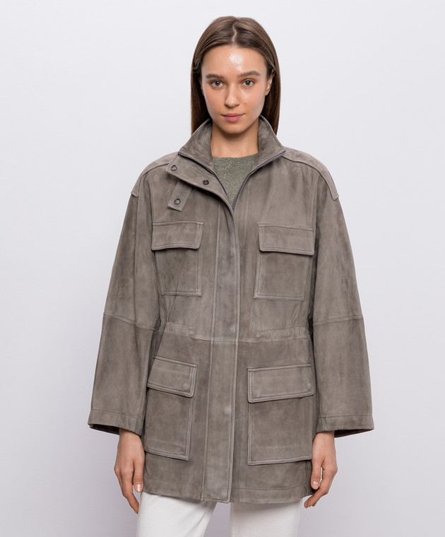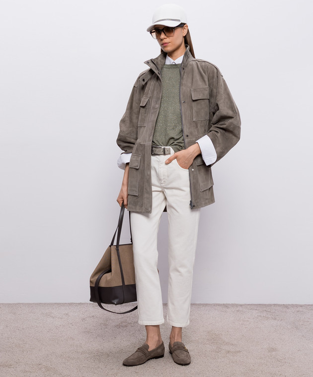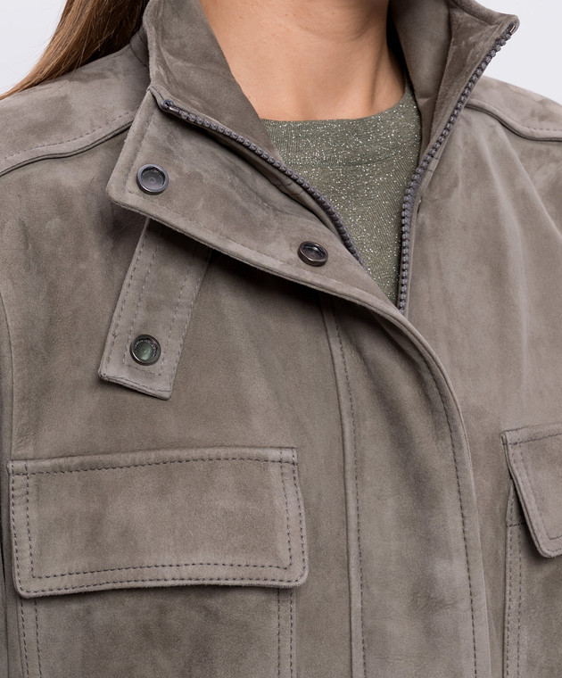 Замшева куртка кольору хакі з ланцюжком моніль