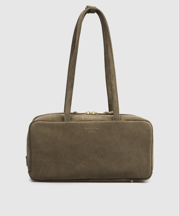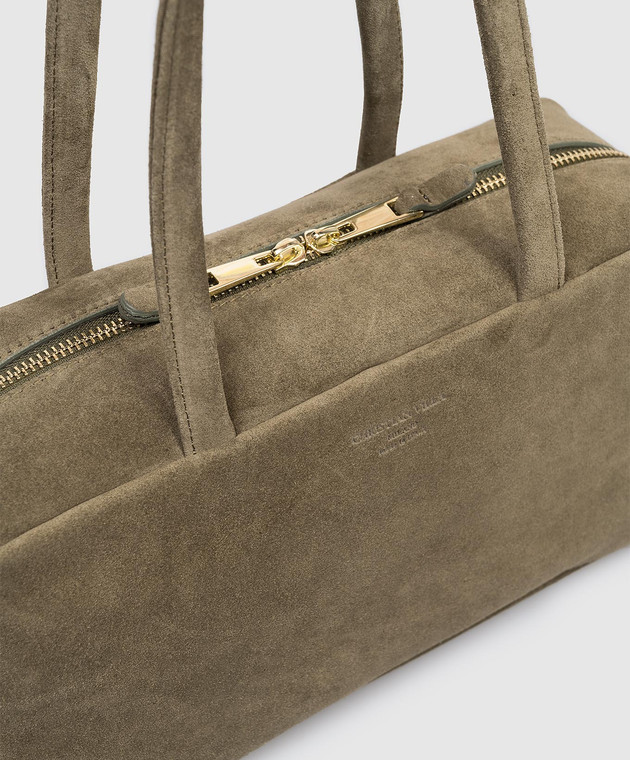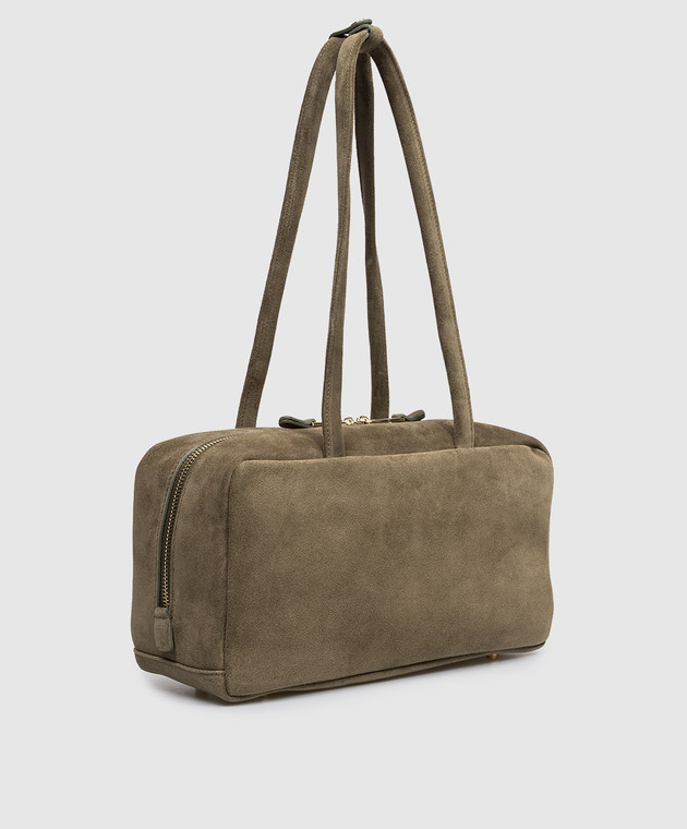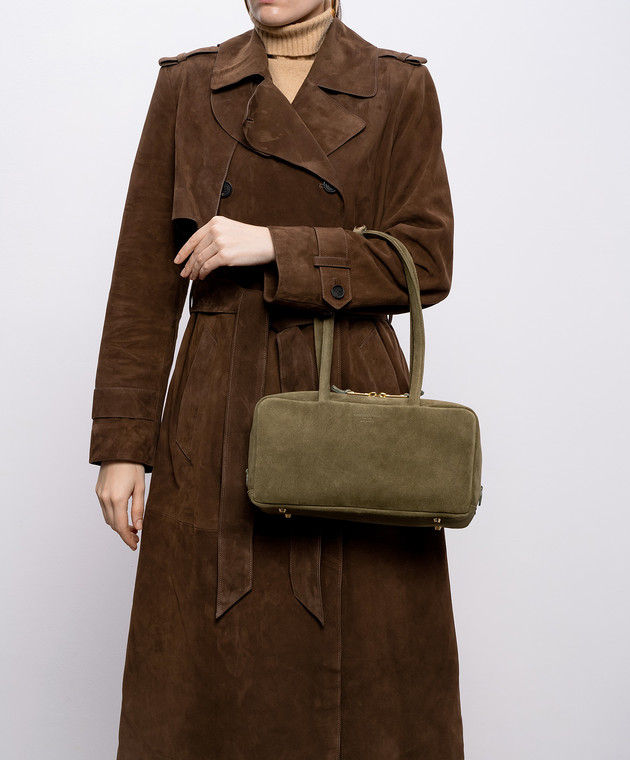 Замшева сумка-боулер кольору хакі