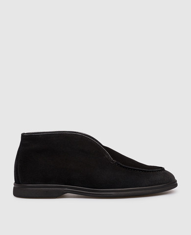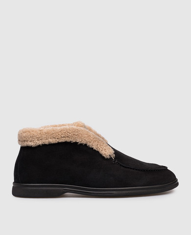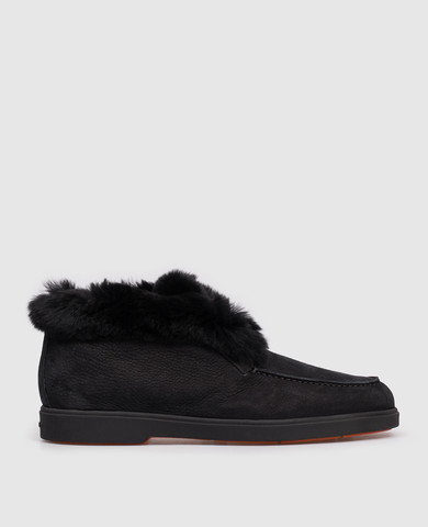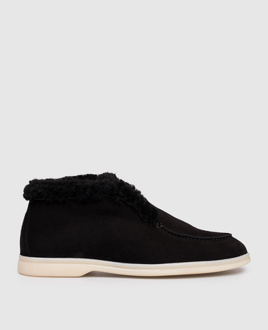 Замшеві дезерти на хутрі чорного кольору з оздобленням