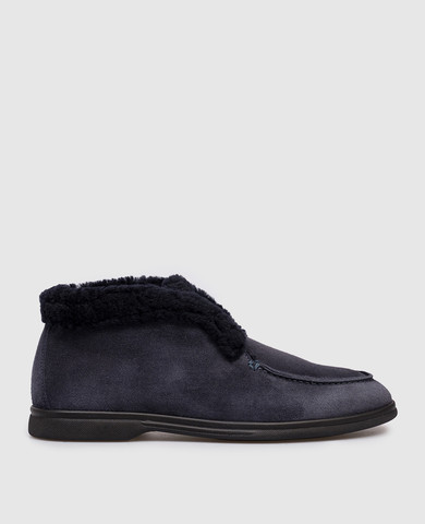 Замшеві дезерти на хутрі синього кольору з оздобленням