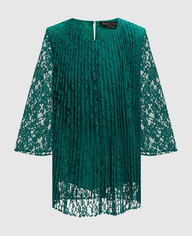 Зелена блуза з мережива з плісуванням