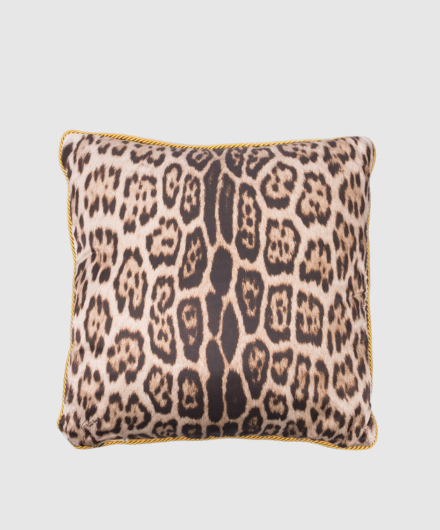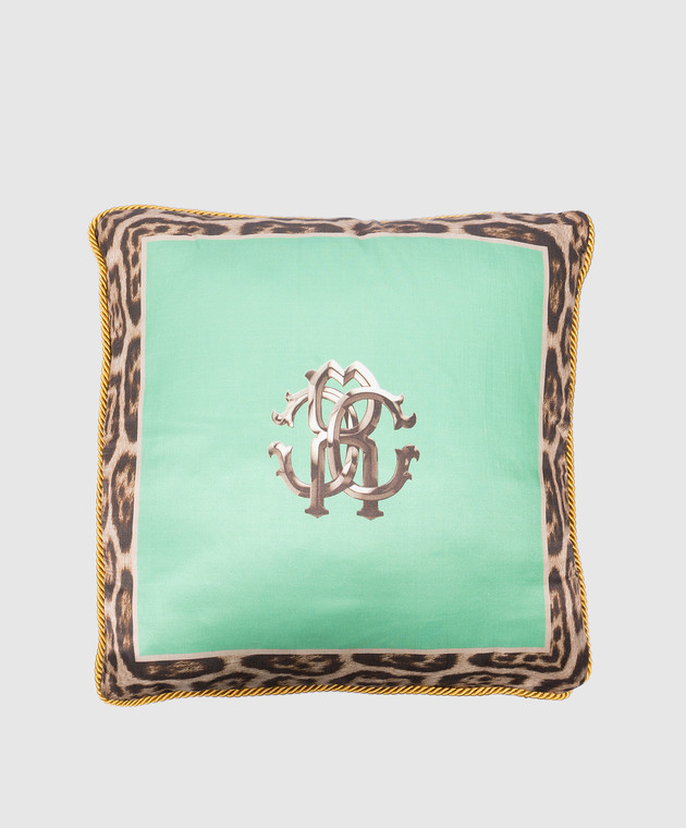 Зелена декоративна подушка з принтом монограми в анімалістичний принт