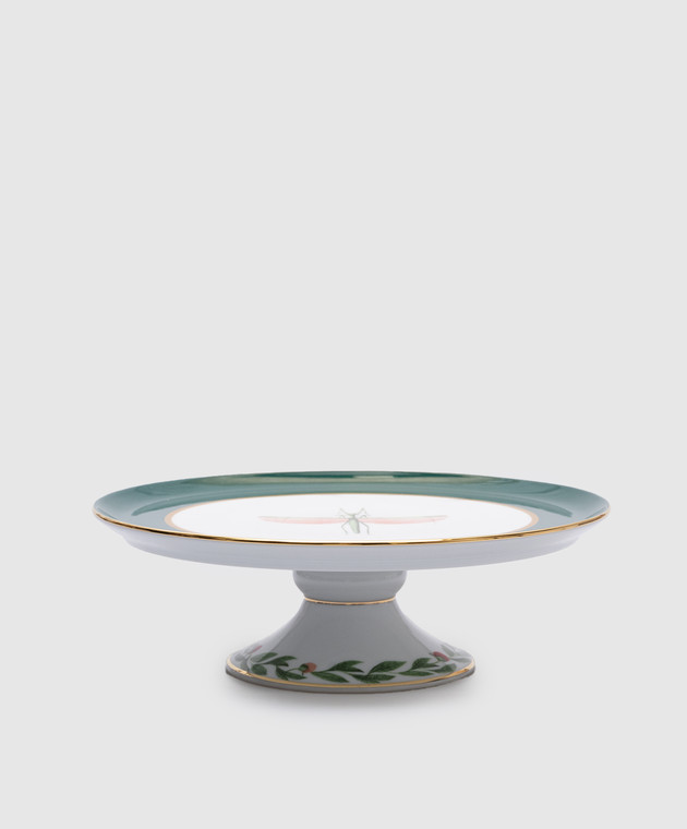Зелена порцелянова тортівниця з принтом Libellula