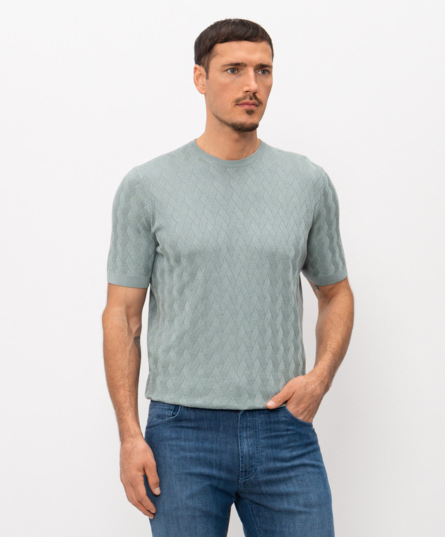 Зелена футболка з шовком у візерунок