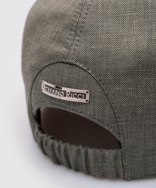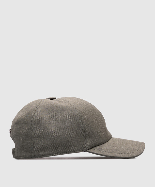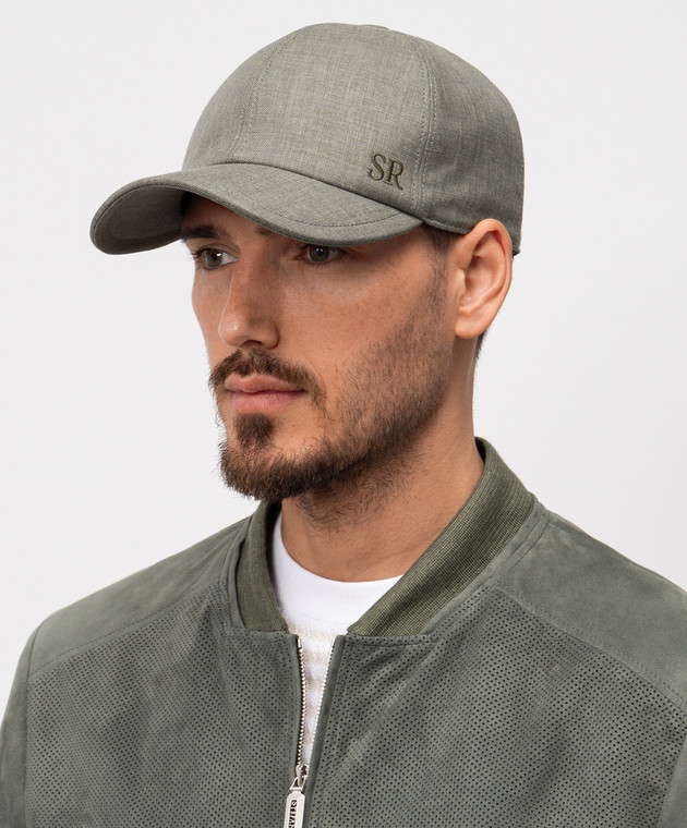 Зелена кепка з льону, вовни і шовку з монограмою логотипа