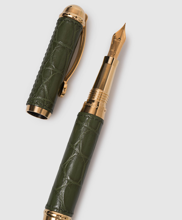 Зелена чорнильна перова ручка зі шкіри крокодила