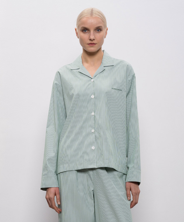 Зелена піжамна сорочка в смужку з логотипом