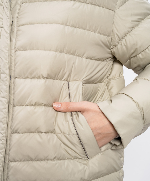 • Декор простібка у вигляді горизонтальних смуг, ланцюжок моніль, брендовий патч