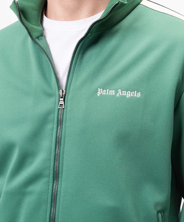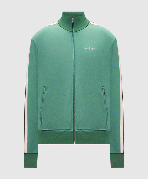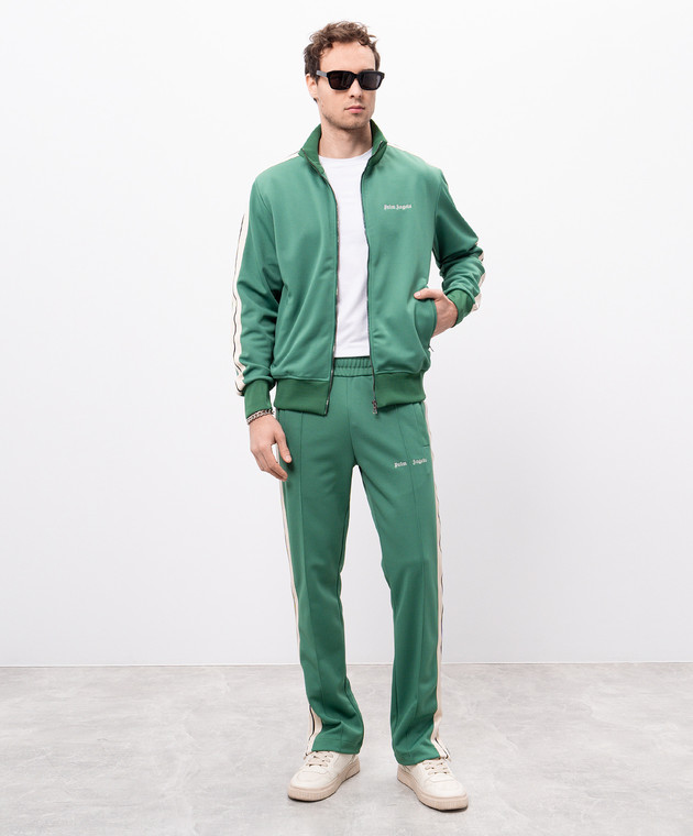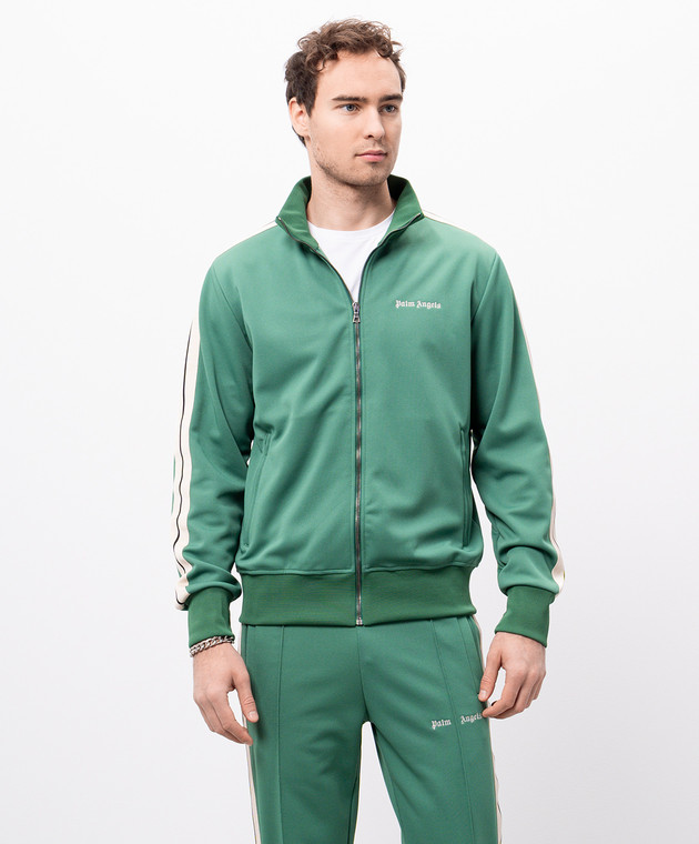 Зелена спортивна куртка з лампасами з вишивкою логотипа