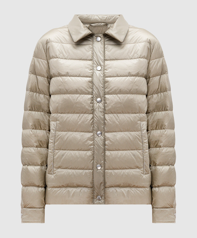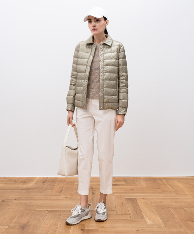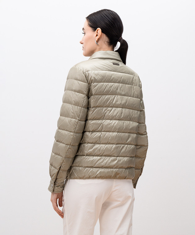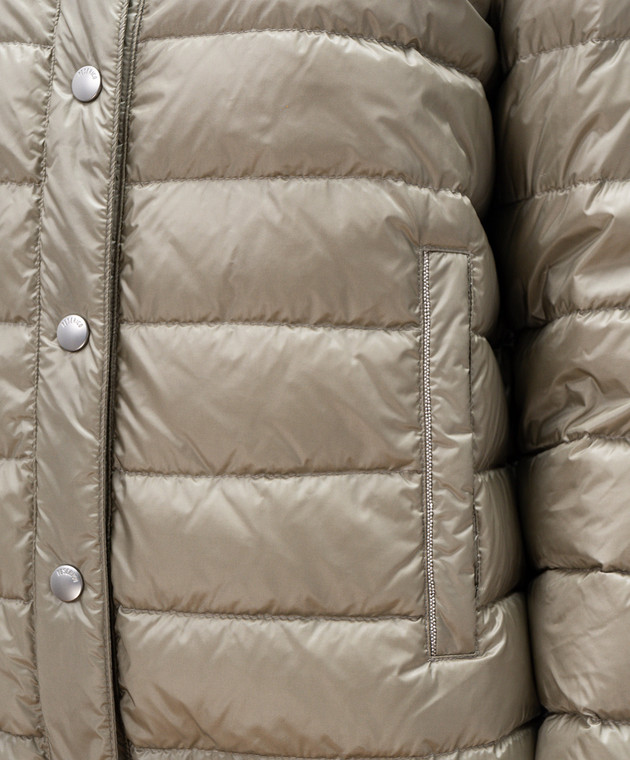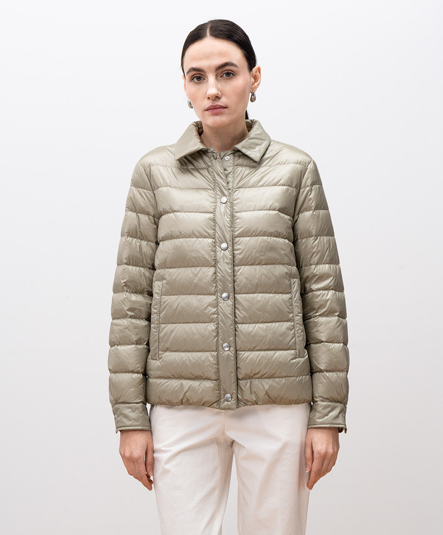 Зелена стьобана пухова куртка з ланцюжком моніль