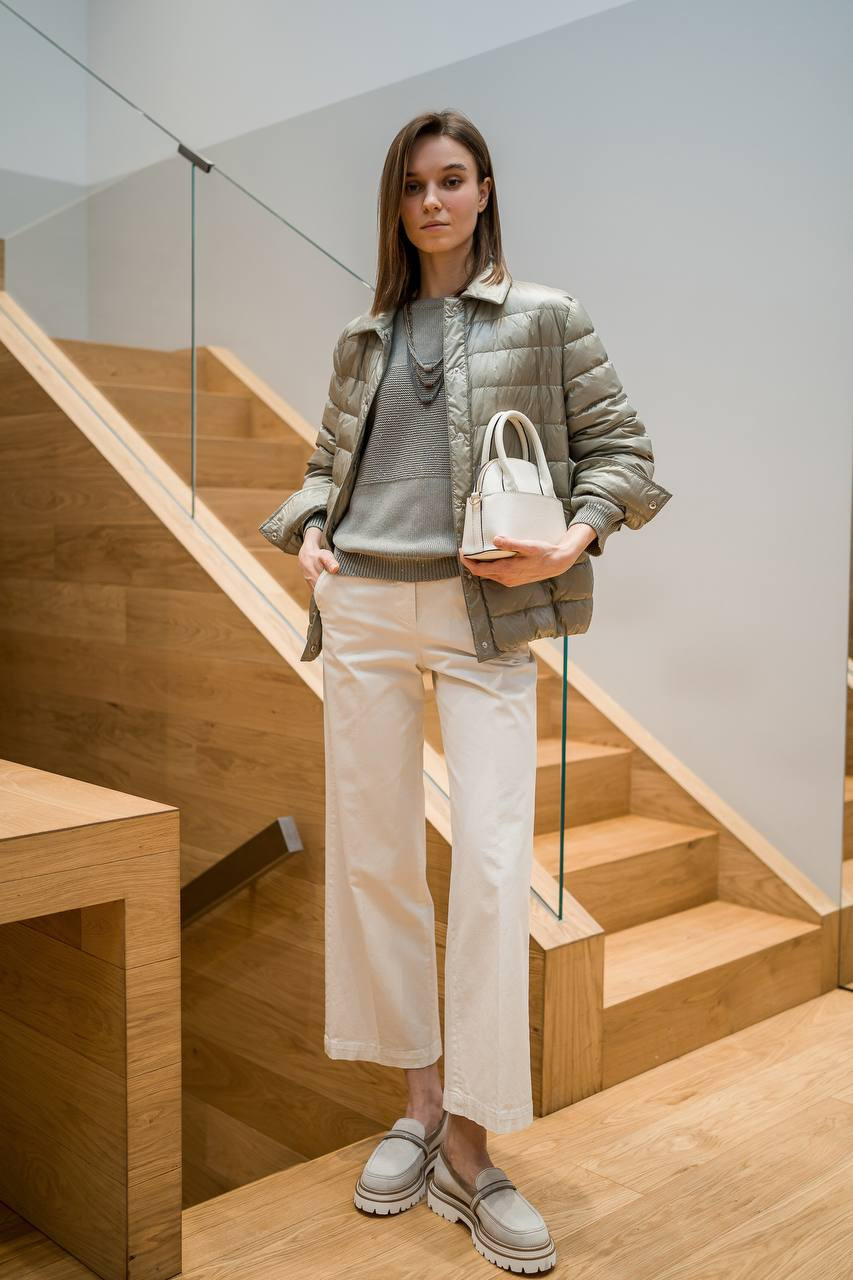 • Декор простібка у вигляді горизонтальних смуг, ланцюжок моніль, брендовий патч
