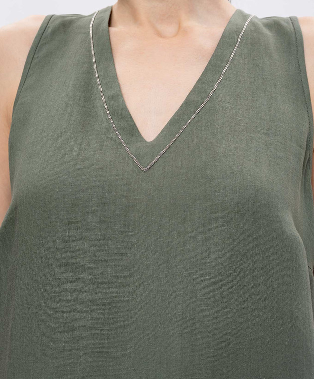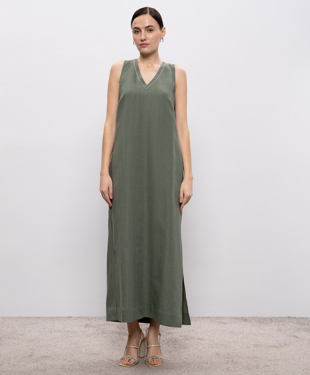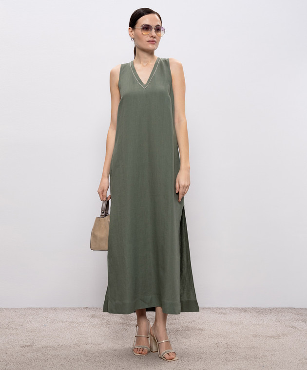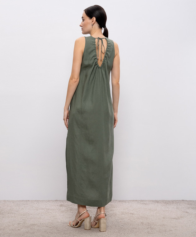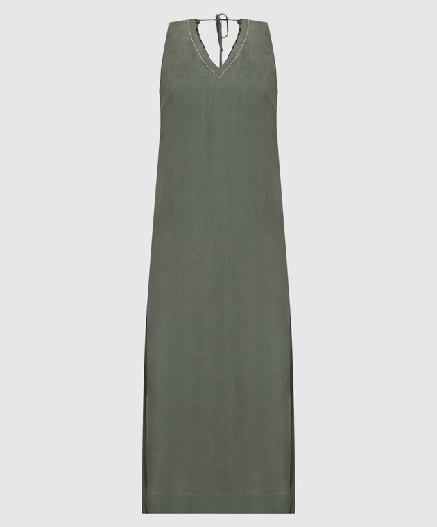 Зелена сукня з льону з ланцюжком моніль