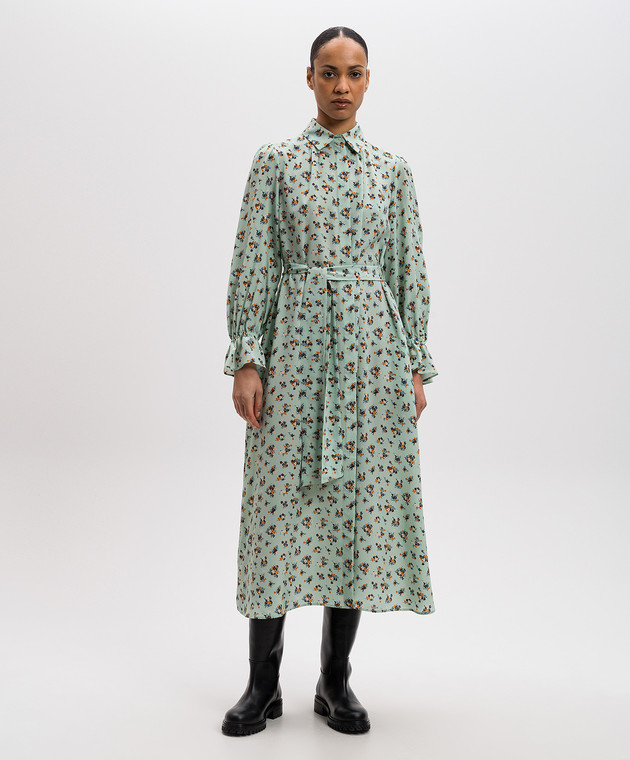 Зелена сукня міді TAFFY із шовку в квітковий принт