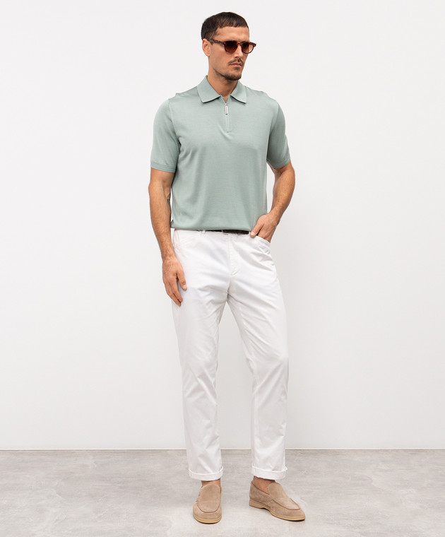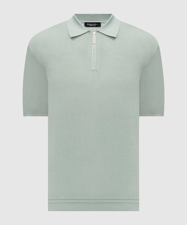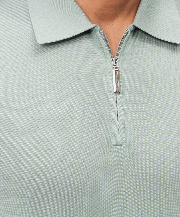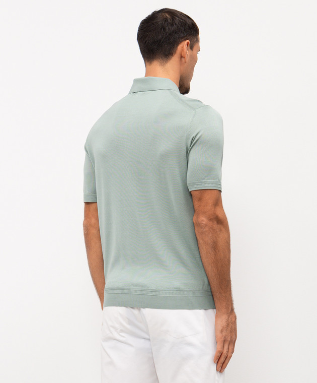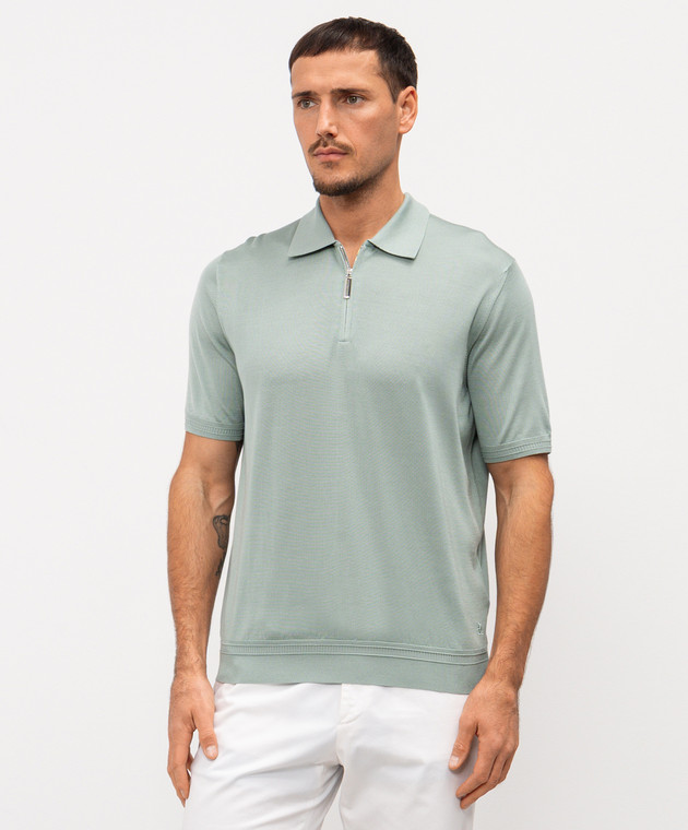Зелене поло із шовку з вишивкою монограми логотипа