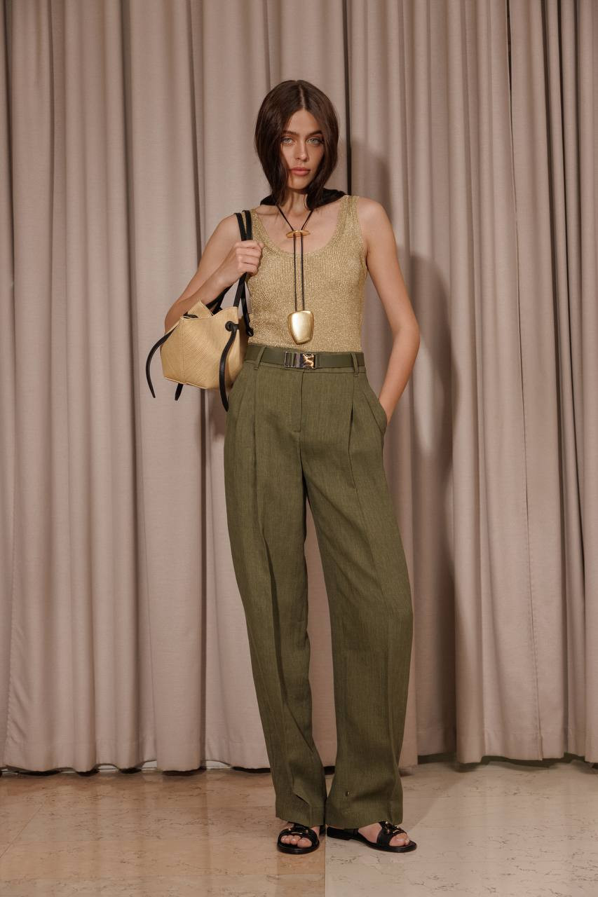 Зелені штани SIAMESE з льону