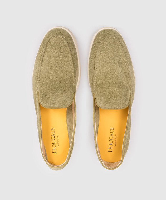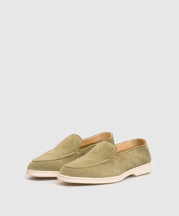 Зелені замшеві лофери з логотипом