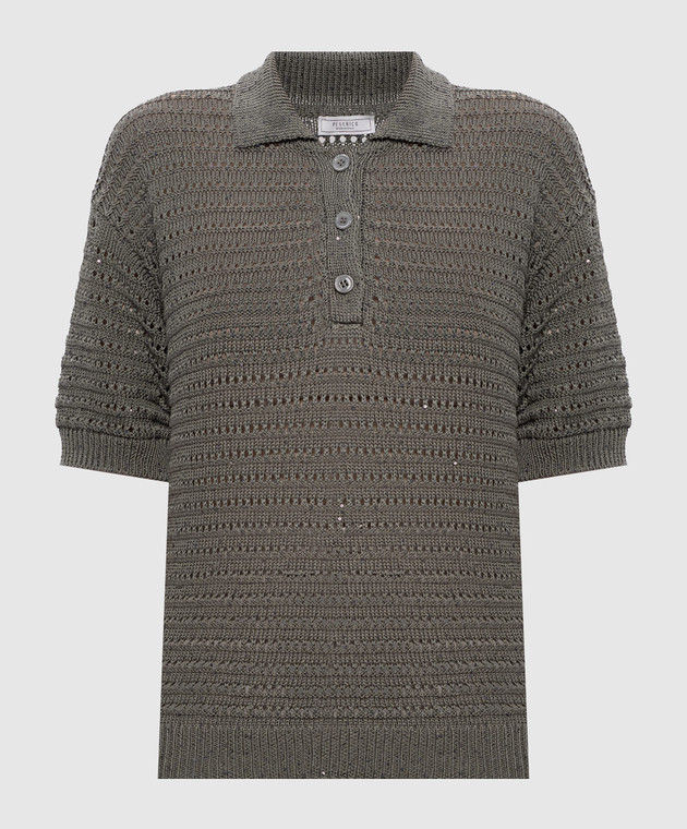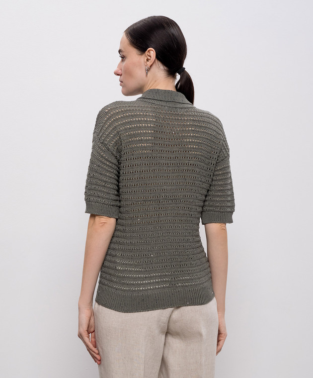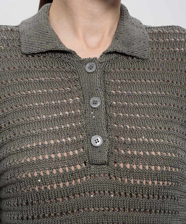 Зелений ажурний топ з коміром поло
