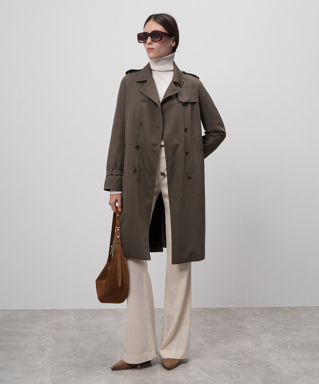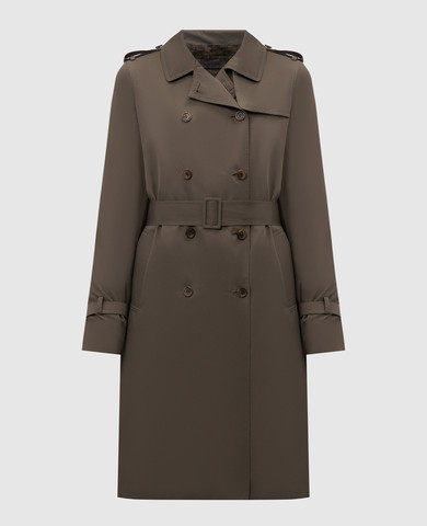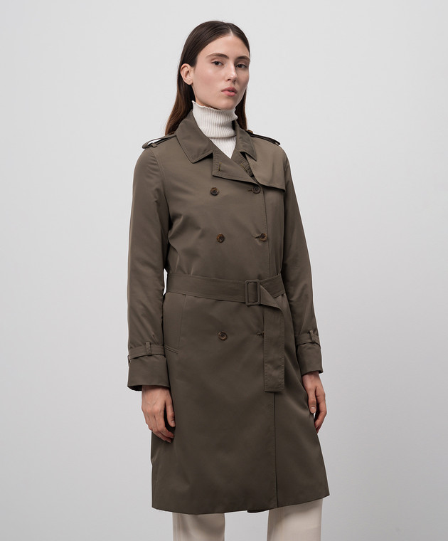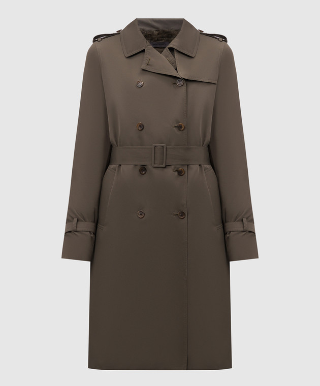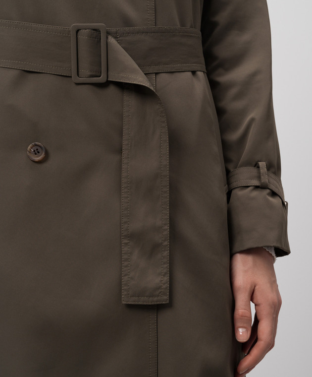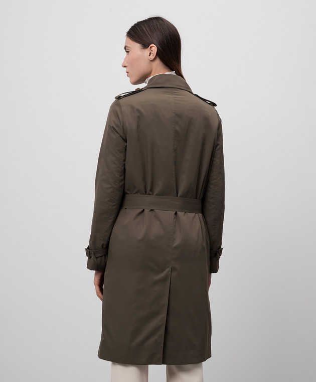 Зелений двобортний тренч на хутрі