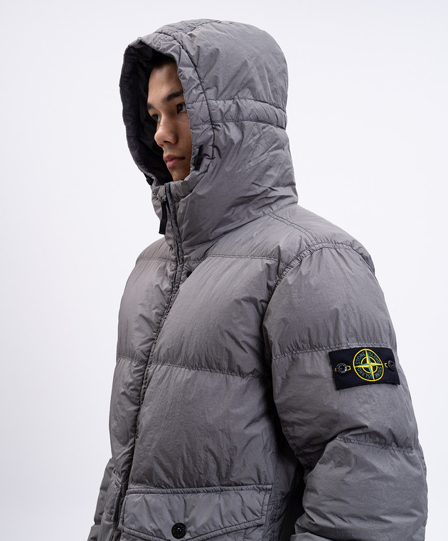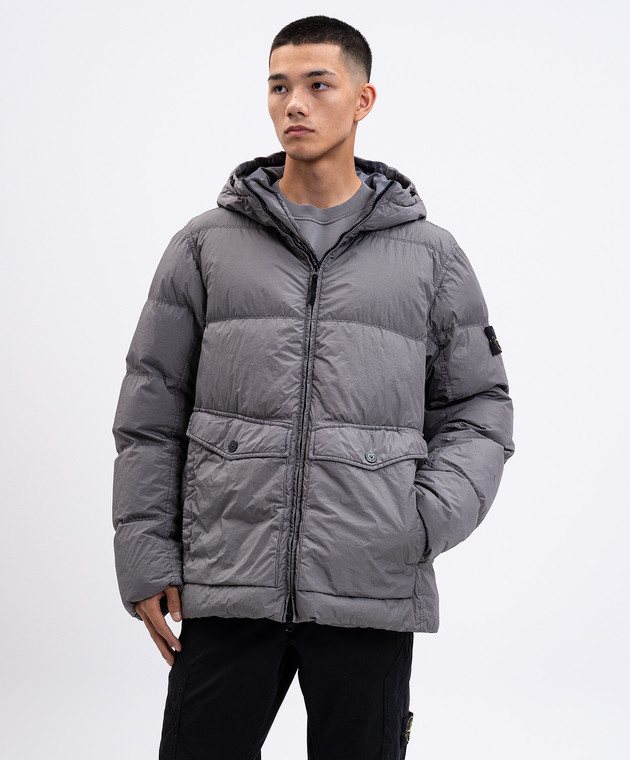 Сірий пуховик з логотипом