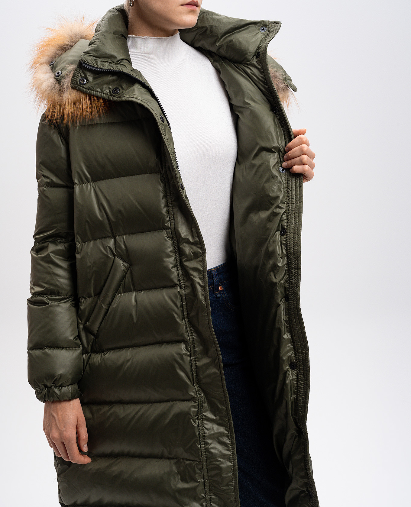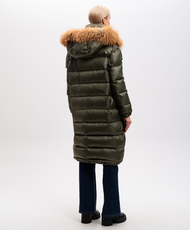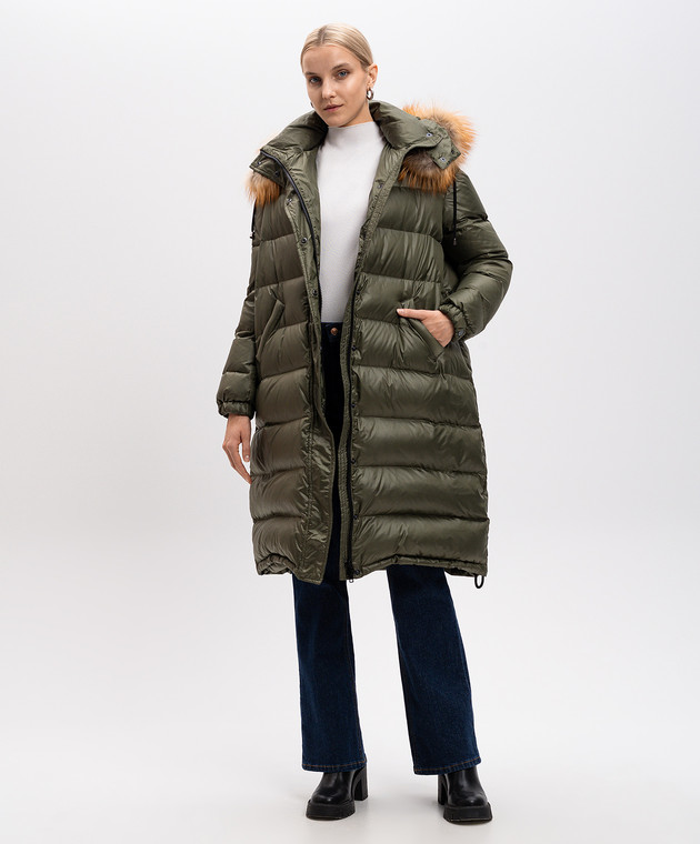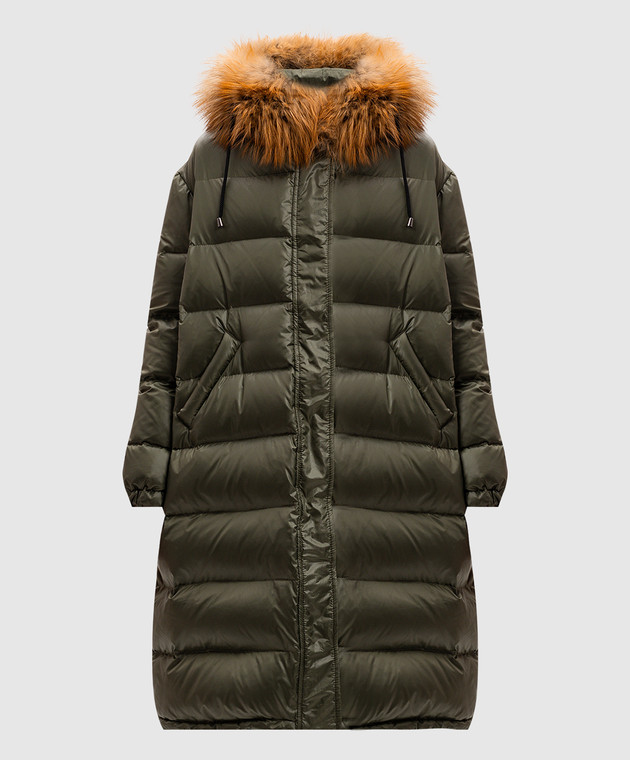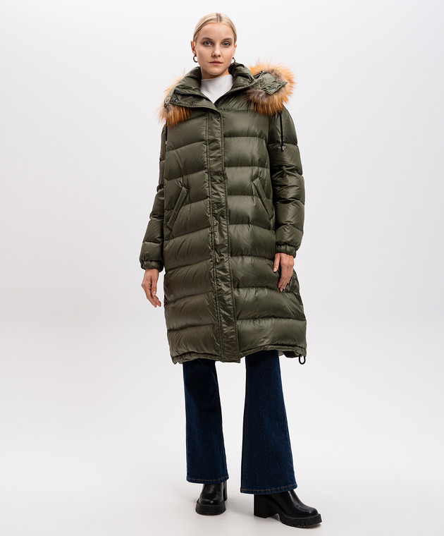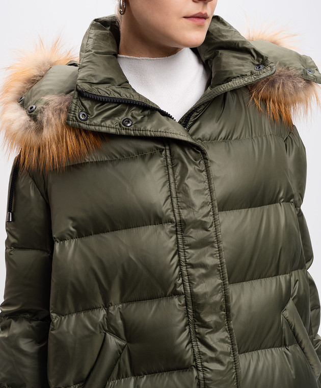 Зелений пуховик з хутром лисиці