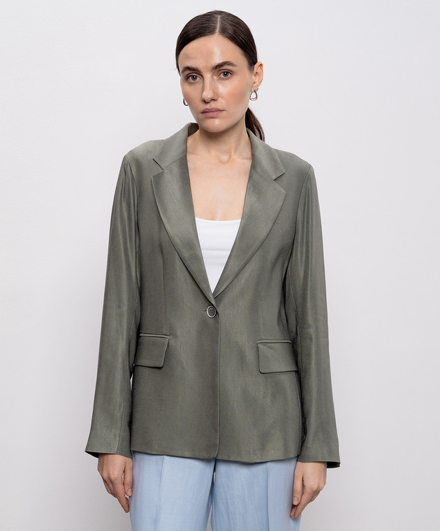 Зелений жакет з льоном з брендовим патчем