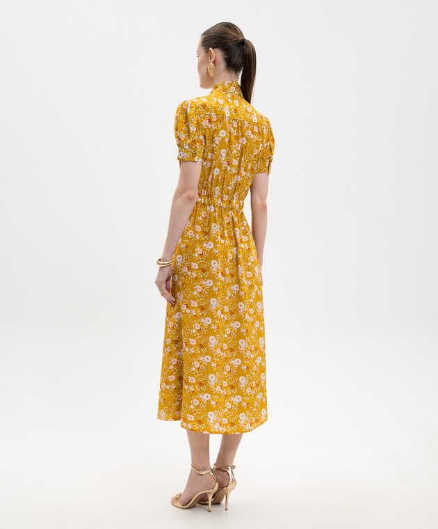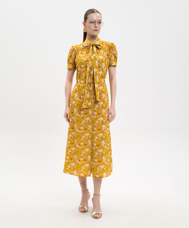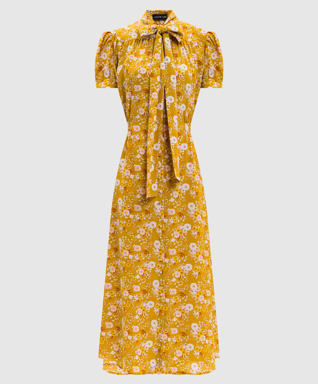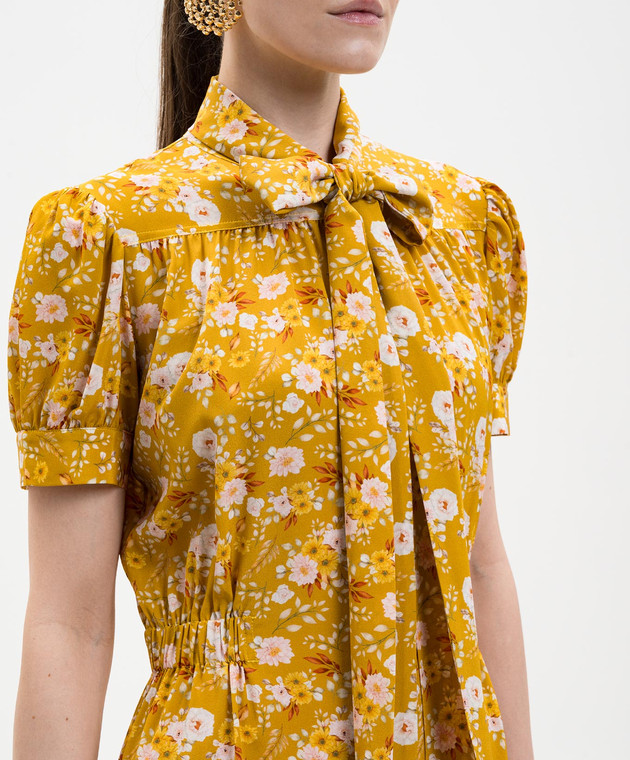Жовта сукня із шовку в квітковий принт з коміром-аскот