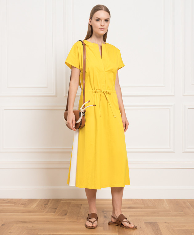 Жовта сукня міді з контрастним оздобленням