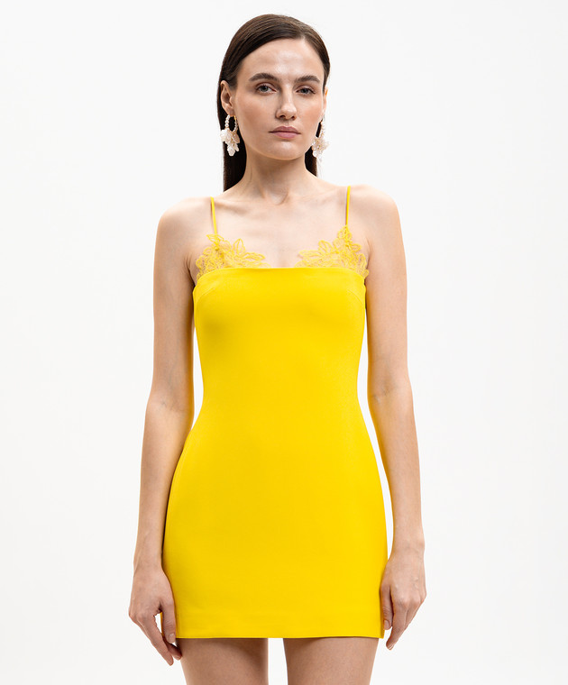Жовта сукня міні з мереживом
