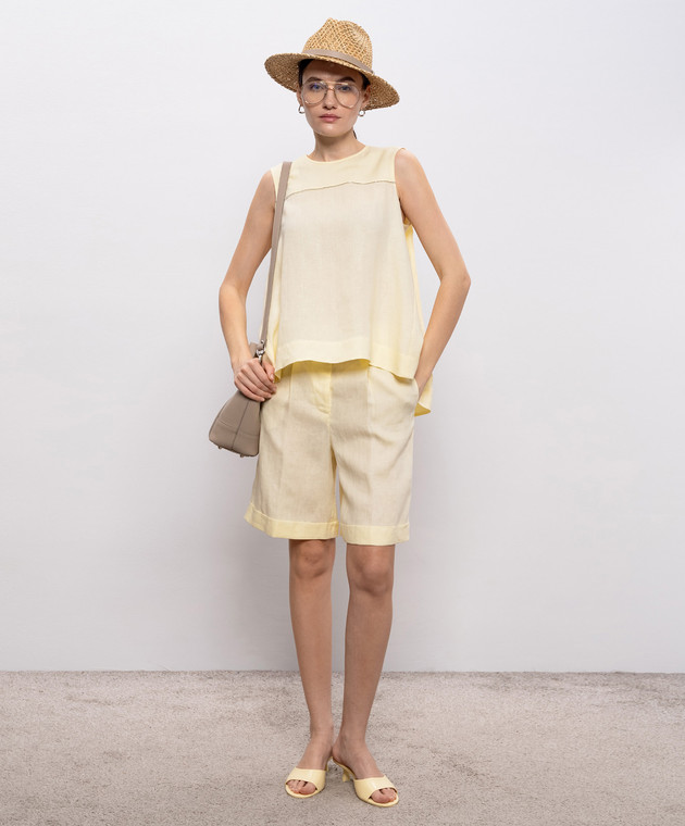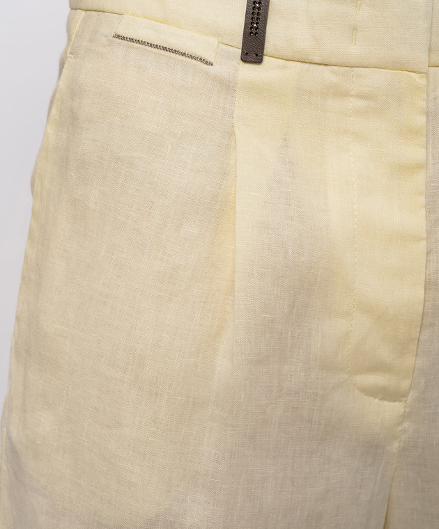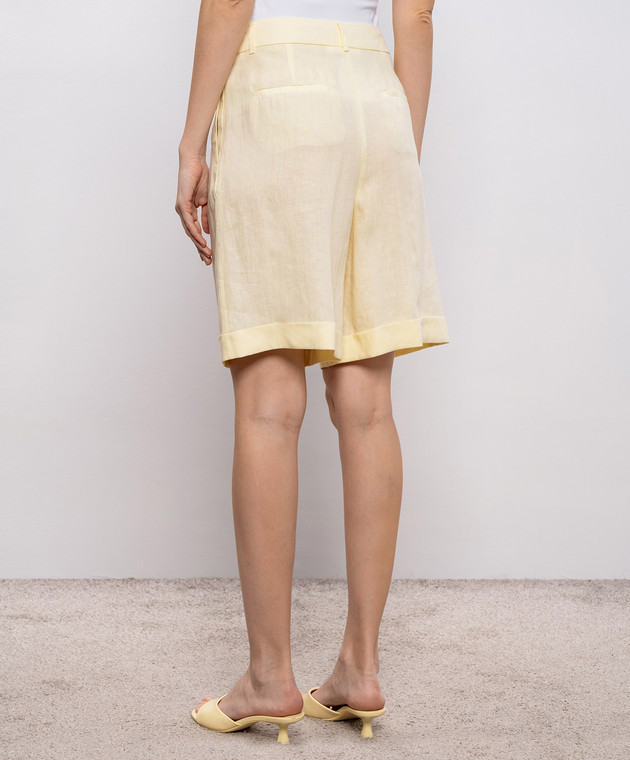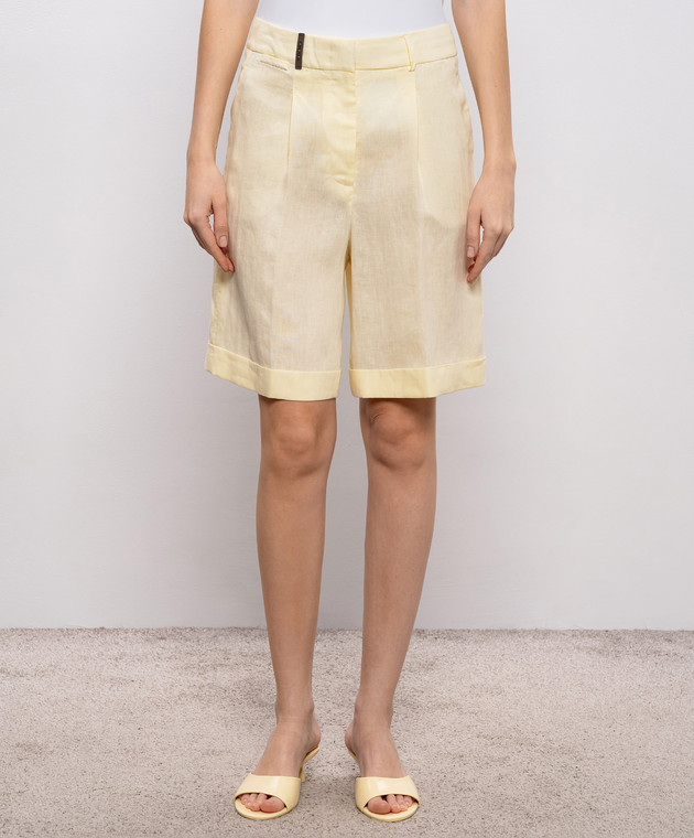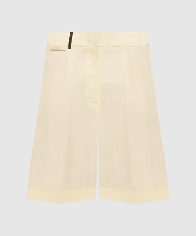 Жовті шорти з льону з патчем та ланцюжком