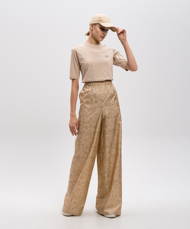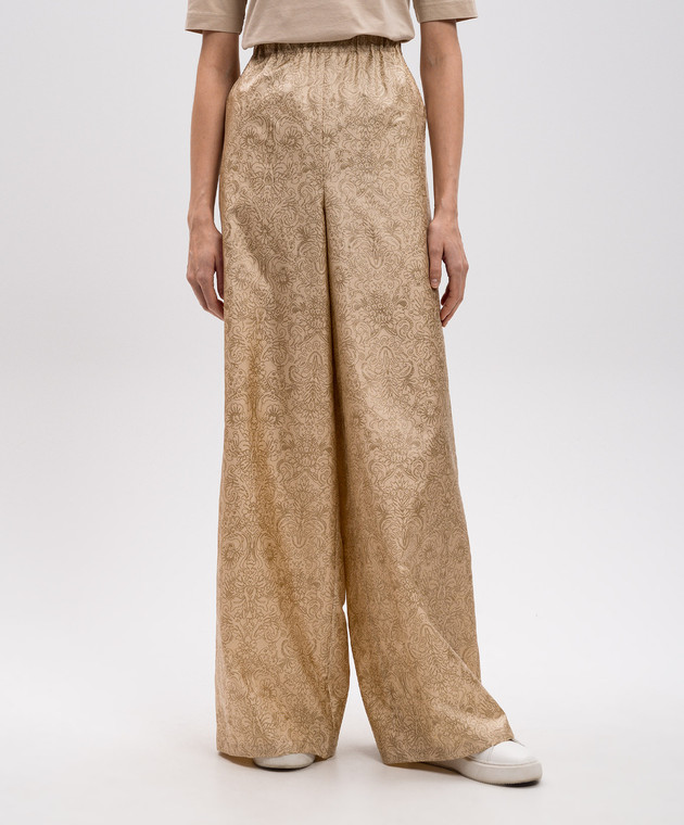 Жовті штани DOMIZIA із шовку в квітковий принт