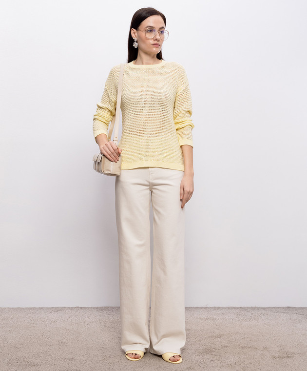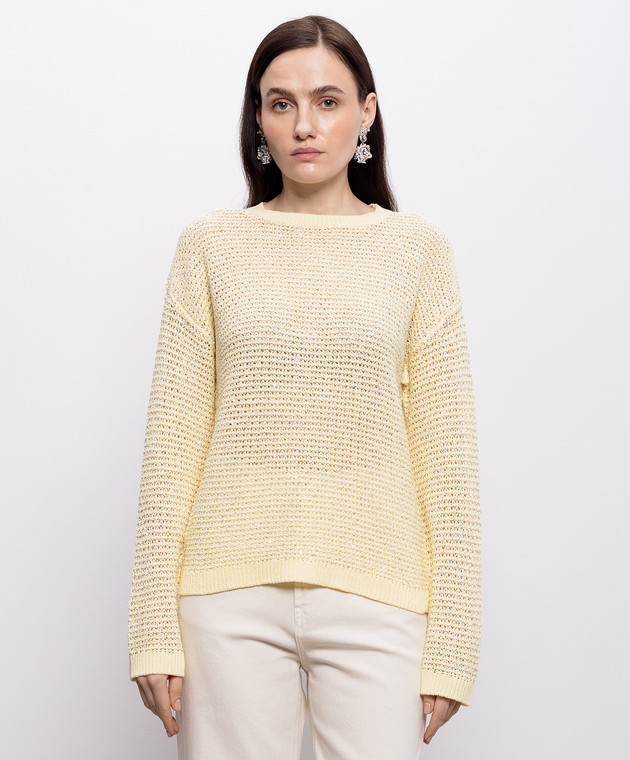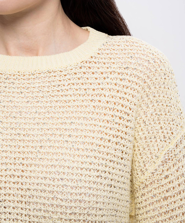 Жовтий ажурний джемпер з паєтками