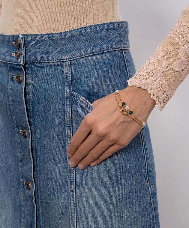 Золотистий подвійний браслет VLogo з перлинами Swarovski