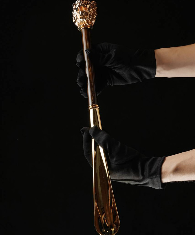 Золотистий ріжок для взуття з ручкою у вигляді голови лева